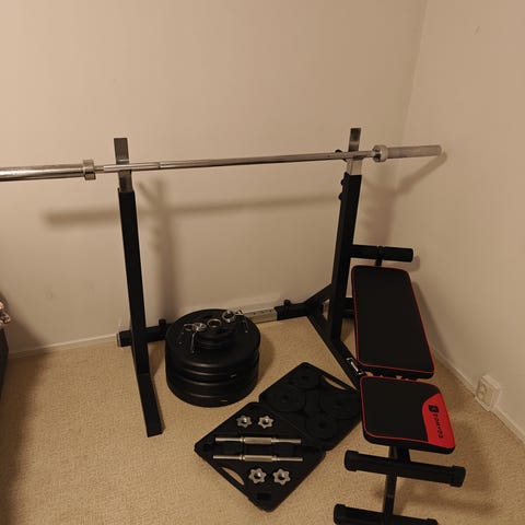 Säljer ett komplett och rejält hemmagym i mycket gott skick. All utrustning är stabil, genomtänkt och av hög kvalitet. Perfekt för dig som vill träna seriöst hemma.