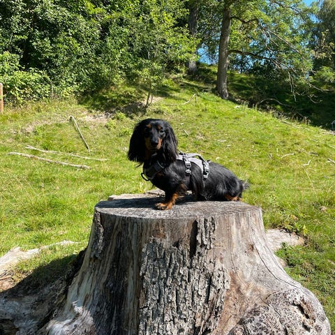 Candy är en korthårig dvärg tax med en unik färg chocklad merl. 🤎 inte SKK registrerad.