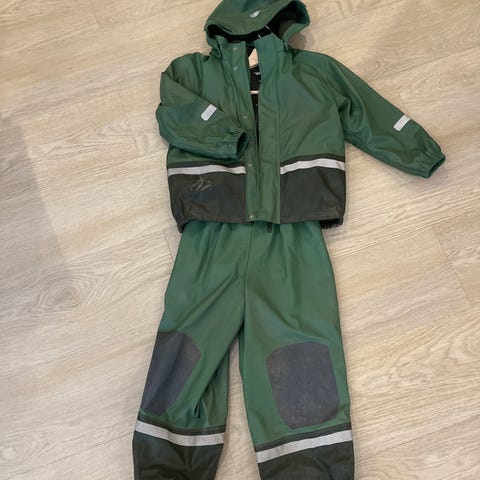 Ytterkläderna är i fint skick. Finns ett litet hål på jackärmen (se bild 5)