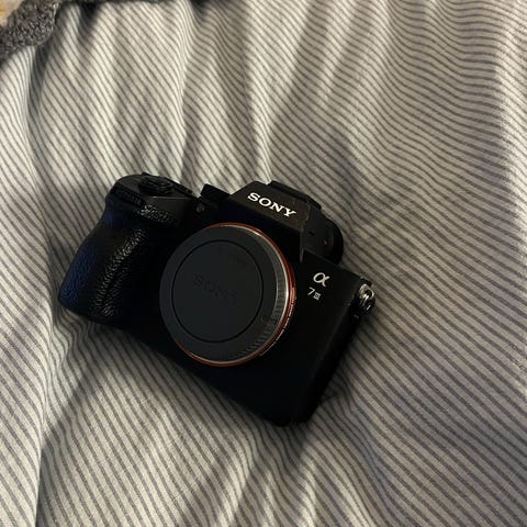 Sony α7C spegellös kamera med kompakt design och utbytbar objektivfattning. Kameran har en vridbar LCD-skärm för flexibel fotografering och filmning. Den är lämplig för både stillbild och video, och passar användare som söker en lätt och portabel kamera med avancerade funktioner.