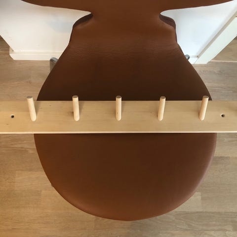 Eftersom det är obehandlat trä (björk) har den naturligt gulnat. Detta försvinner också vid slipning.