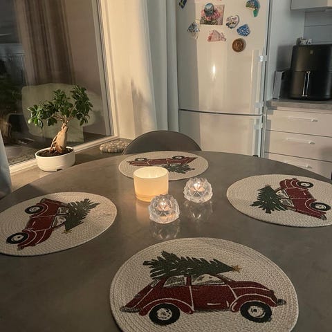 Säljer dessa 4 st jul bordstabletter som är 38 cm. Aldrig använda.