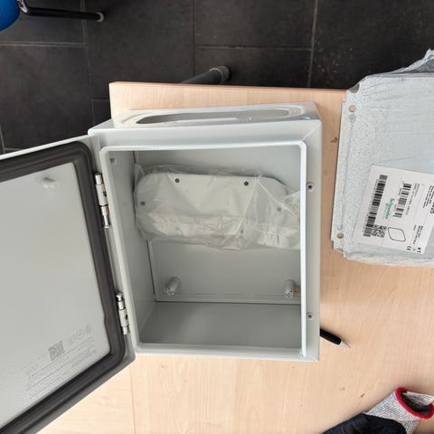 Helt nytt väggskåp till hjärtstartare perfekt för verksamhet. Skåpet har ett larm som tjuter r dörr öppnas. Plats för övrig hlr utrustning och det ser proffsigt och seriöst ut istället för att hängade på en krok.