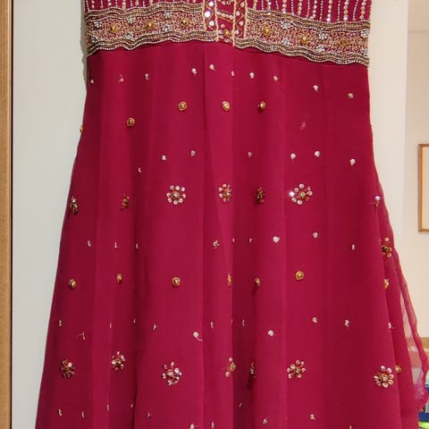 Röd guldig sari från Sri Lanka i storlek s ungefär