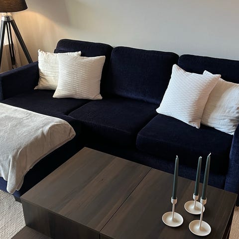 Soffa i jättebra skick, inte för mjuk så den håller sig snygg i formen men ändå mkt skön att sitta i!