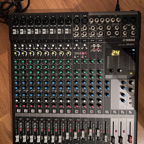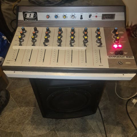 Tascam m-106 vintage ljudmixer med flera kanaler och reglage för ljudjustering. Utrustad med olika ingångar och utgångar för ljudanslutningar. Perfekt för din hybrid hemma studio med analoga och digitala inspelnings medium!