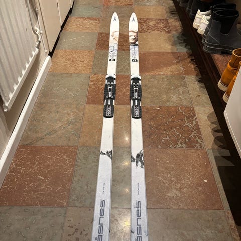 Skidorna är bredare än vanliga längdskidor (700 mm) för bättre bäregenskaper på lös snö. Även om skidorna är lite bredare är de fortfarande lätta. Perfekta nu när det finns massor med nysnö.