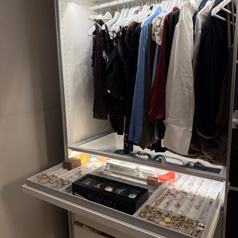 Det som är så bra med dess inredning är att du själv kan välja hur du vill inreda garderoberna med hyllorna!