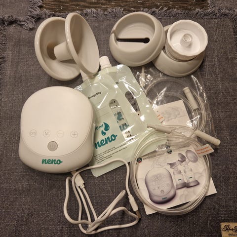 Angelo är en trådlös, elektrisk pump från Neno. Angelo är en uppdaterad version av pumpen Uno och kommer i ett praktiskt litet format som gör att du enkelt kan ta pumpen med dig under dagen och pumpa när det behövs. Pumpen har nio stimuleringsnivåer och nio pumpnivåer som du kan ställa in efter eget behov. Stimuleringslägena stimulerar körtlarna innan mjölkning vilket ger ett bättre mjölkflöde. Pumpen levereras med en nappflaska med tillhörande napp och har en specialutformad tratt i kvalitativ silikon som är varsam mot huden och ger ett förbättrat flöde av mjölk. Några delar av pumpen måste steriliseras regelbundet med kokande vatten eller en steriliseringsapparat för nappflaskor. Pumpen är designade för att passa alla storlekar. Enheten byter automatiskt funktionsläge och stängs av efter 30 minuters användning.