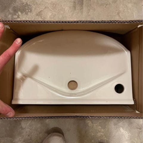 Helt oanvänd handfat med blandare och tillbehör. Mått 56×44