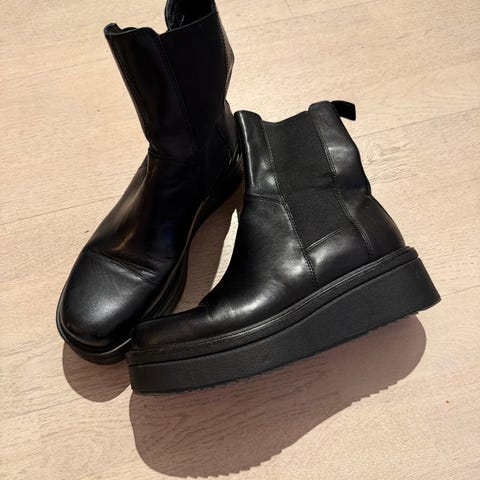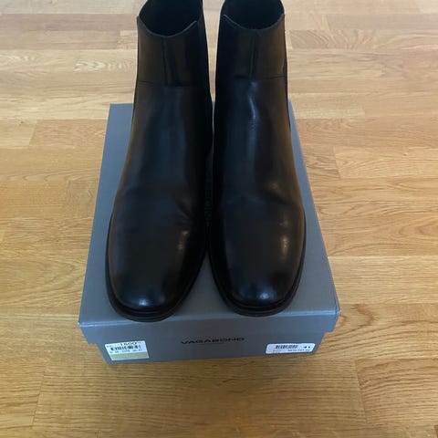 Vagabond boots i storlek 39, svarta i färgen. Skorna är tillverkade i läder och har en låg robust sula. Designade för vardagligt bruk med en enkel och tidlös stil.