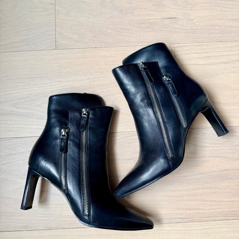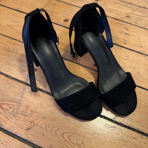 Läderklackskor i storlek 37, brun färg. Skorna har en slät yta och en medelhög klack. De är avsedda för dam.