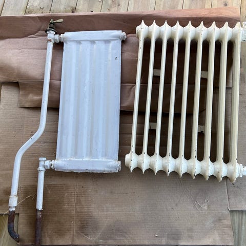 Gamla gjutjärnselement radiatorer i olika storlekar och utföranden. Radiatorerna är tillverkade av gjutjärn och har en klassisk design. Flera olika storlekar. Från 500kr/styck. Väggfästen finns.