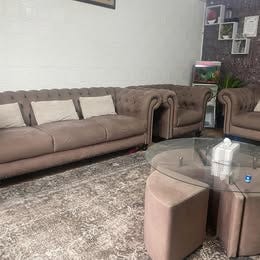 Soffa, Chesterfield, 2 Fåtöljer, bord