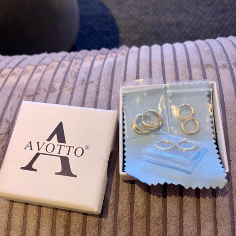 Setet inkluderar tre par örhängen i olika storlekar och former.