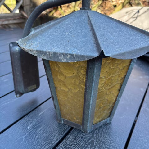 Liten taklampa i mycket bra skick från 60-talet. Jag har inte hittat något slitage alls på den. Material: glas och oxiderad metall. Höjd: 26 cm. Diameter: 17 cm. Skickas ej. Endast för avhämtning i Göteborg