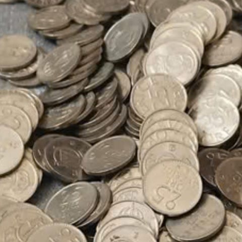 Säljer ett större parti svenska 25-öresmynt i blandade årtal, perfekt för samlare, nybörjare eller den som vill komplettera en årtalsserie.