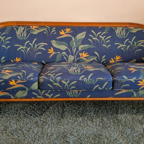Med sin karaktäristiskt svängda form och de elegant smala pinnarna i ryggen är den magnifika pinnsoffan ”Florett” ett verkligt blickfång. Den välvda sitsen och ryggstödet i varm, vacker teak ger soffan både en inbjudande komfort och en tidlös kvalitet som lyfter vilket rum den än placeras i.