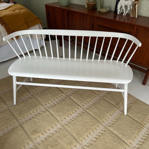 Pinnsoffan är varsamt restaurerad och har återfått sin fantastiska lyster, där träets djup och glöd kommer till sin fulla rätt. Ett enastående resultat – kanske är detta den vackraste pinnsoffan av sitt slag.
