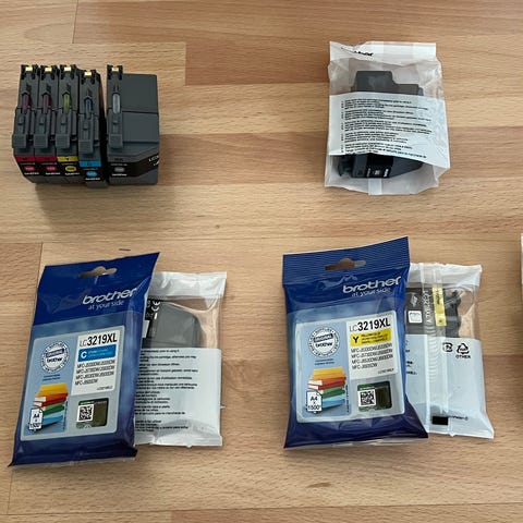 Brother LC-426XL bläckpatroner i färg och svart. Passar för användning i kompatibla Brother-skrivare. Levereras i originalförpackning. Kostar 1700ish på webben