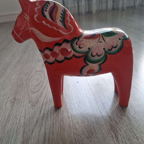 Säljer en genuin, handmålad dalahäst från Tillv. Färnäs – klassiskt svenskt hantverk med vacker kurbits i traditionella färger. Originaletikett finns kvar (se bild),
