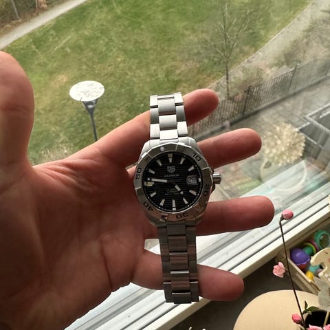 TAG Heuer Aquaracer herrklocka (WAJ1110.BA0870) med svart urtavla och vridbar bezel. Klockan har ett armband i rostfritt stål och en boett i stål. Den har legat i en låda de senaste sju åren. Alla originaldelar och originalförpackning finns.