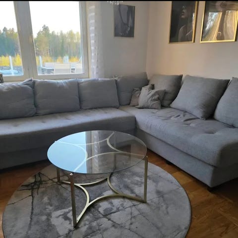 Mycket fin hörnsoffa köp på Mio, välanvänd men mycket hållbar och i fint skick! Finns hund, har funnits två katter. De har ej rivit på soffan, då den är fin! Den ha några år på nacken men välbevarad, så väldigt bra kvalitet eftersom den är jättefin fortfarande! Den är vändbar också så ni kan få korta eller långa sidan åt vilket håll ni vill.