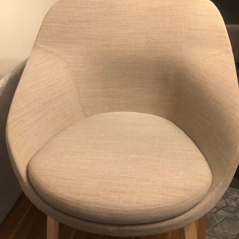 Säljer 4 snygga och bekväma stolar i varm brun textil med träben. Endast ca 6 månader gamla, mycket fint skick.