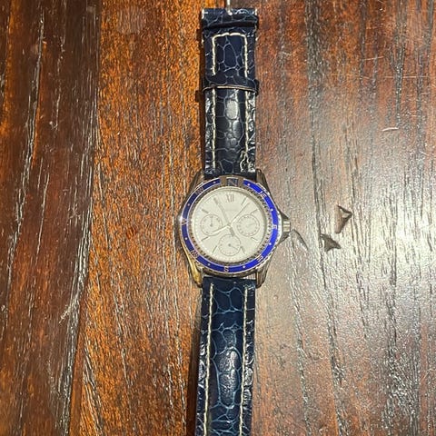 Original läderband ingår, textilarmbandet ingår men väldigt slitet, köpt för annan klocka längesedan!