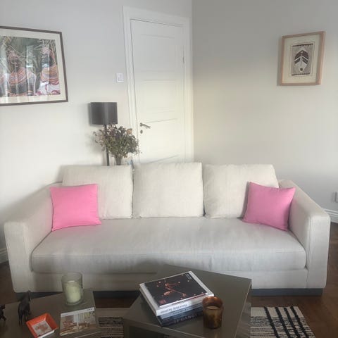 Soffa 3 sits med linnetygklädsel. Inkluderar 3 st lösa kuddar(60x60). Passar för vardagsrum eller liknande utrymmen.