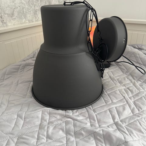 Enkel, överdimensionerad metallform inspirerad av gamla lampor från fabriker och teatrar. Använd de olika lamporna tillsammans så får rummet bra ljus för flera aktiviteter och en enhetlig, rustik stil. Ordinarie pris 299 kr. Säljs med glödlampor.