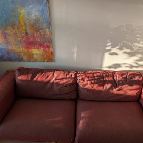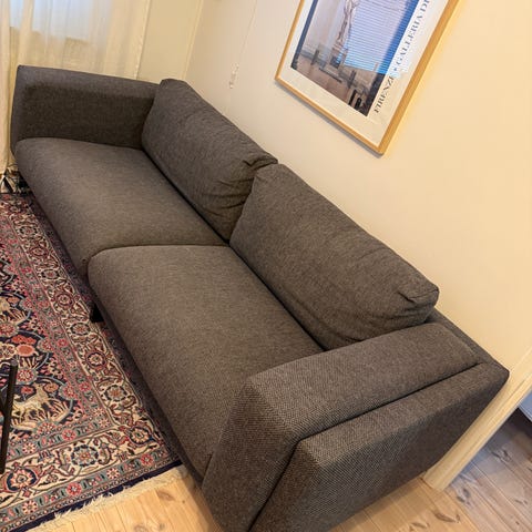 Otroligt skön soffa med fullt avtagbar och maskintvättbar klädsel i gott skick. Viss färgskiftning på sitt- och ryggkuddarnas klädsel finns.