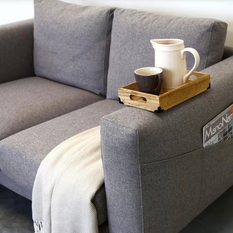 Soffans mått är 251 cm bred, 97 cm djup, 82 cm hög. Går att demontera på mitten för smidigare transport. Hiss finns.