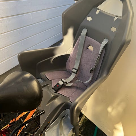Denna babyinsats är gjord av styrofoam och täckt med ett mjukt plyschtyg (bomull). Stolen är universell och passar alla märken av cykelvagnar och lådcyklar.