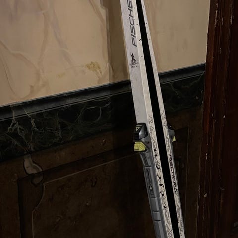 500:- för skidorna och 250:- för pjäxorna.