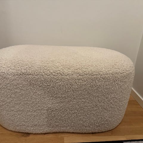 Sittpuff eller fotpall till soffa som även har förvaring. Säljer en soffa i samma tyg, se mina andra annonser.