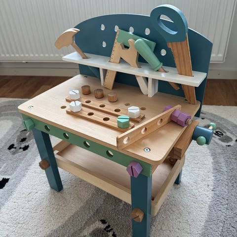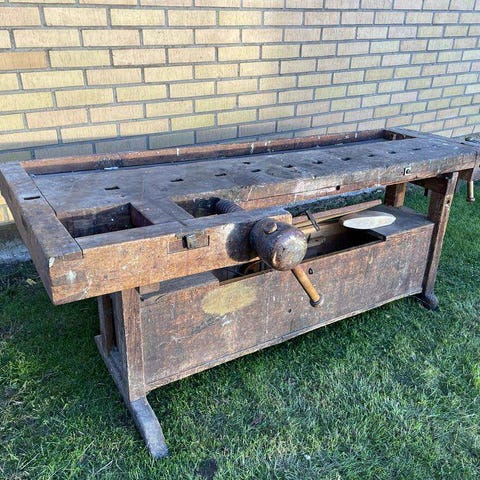 Klassisk slöjdbänk i trä.