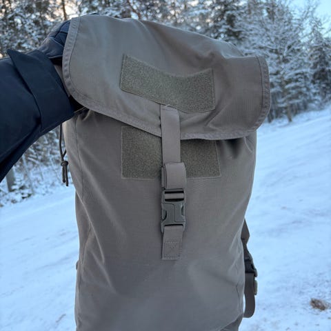 Everest Classic 40L ryggsäck i blå och beige färg. Tillverkad av slitstarkt material med flera justerbara remmar för anpassad passform. Utrustad med vadderade axelremmar och midjebälte för ökad komfort vid bärning. Passar för vandring och friluftsliv.