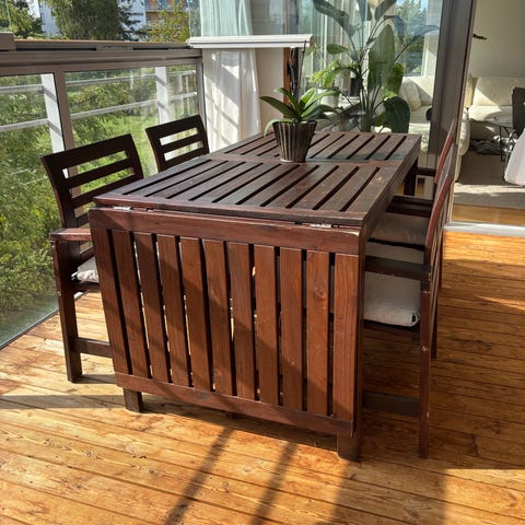 4 stolar + bord och dynor i bra skick. alltid stått inomhus på inglasad terass.