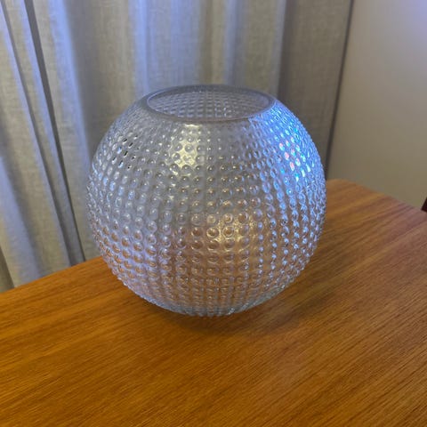 IKEA glasvas i klarglas med en rund form och prickmönster på ytan.