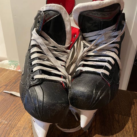 Säljer grabbens skridskor. De är fina och av märket Bauer.
