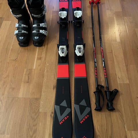 Alpin skida K2 Juvy 129 cm, pjäxor strl. 34, stavar 100 cm