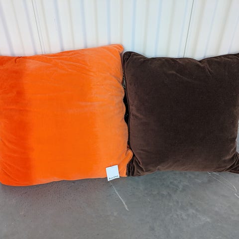 Gul - vita kuddar i bomull, innekuddar ingår. Finns 3 kuddar. 150 kr/ styck. Nya.