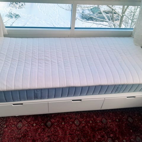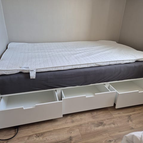 Sängstomme med förvaring på båda sidor från IKEA. Se bild för mått.
