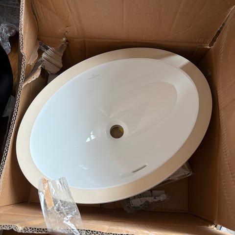 Stilrent handfat från Villeroy Boch bredd 550 mm. Nypris ca 2-3000 kr. OBS! Bild från internet, sitter en annan blandare på som fås med på köpet, annonsen avser handfat.