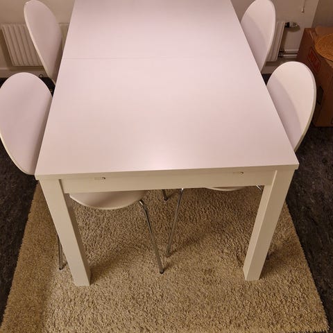 Säljer ett modernt och praktiskt matbord från MIO med ilaggsskiva.
