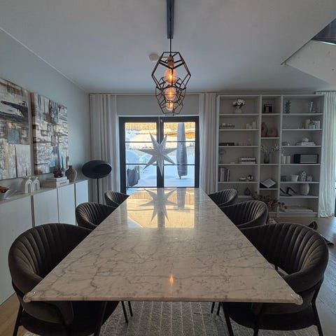 6 stycken läder stolar,tungt träbord med marmorskivor, priser kan diskuteras vid snabb affären