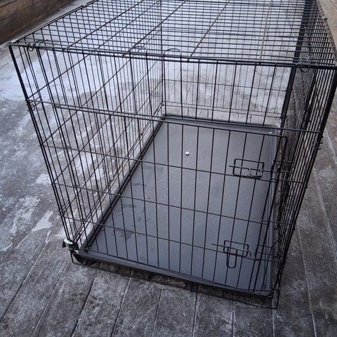 Hundbur i metall med dyna