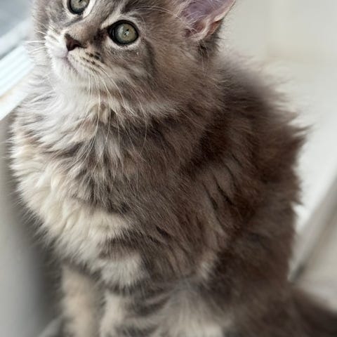 Lite smalare ansiktsform, lite busigare av sig och väldigt nyfiken. Vill gärna vara där alla är. Diskmaskinen är särskilt spännande plats att undersöka i tid och otid och mistas ofta för hinderbana. Så även trappor! Stor atletisk potential i denna gos tjej. Älskar att mysa i fönstret med värmande solstrålar. Har inget emot mys med sina människor.