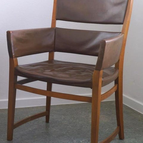 Giron läderställ replik av Kare design med sits och ryggstöd i brunt läder och svart metallram.